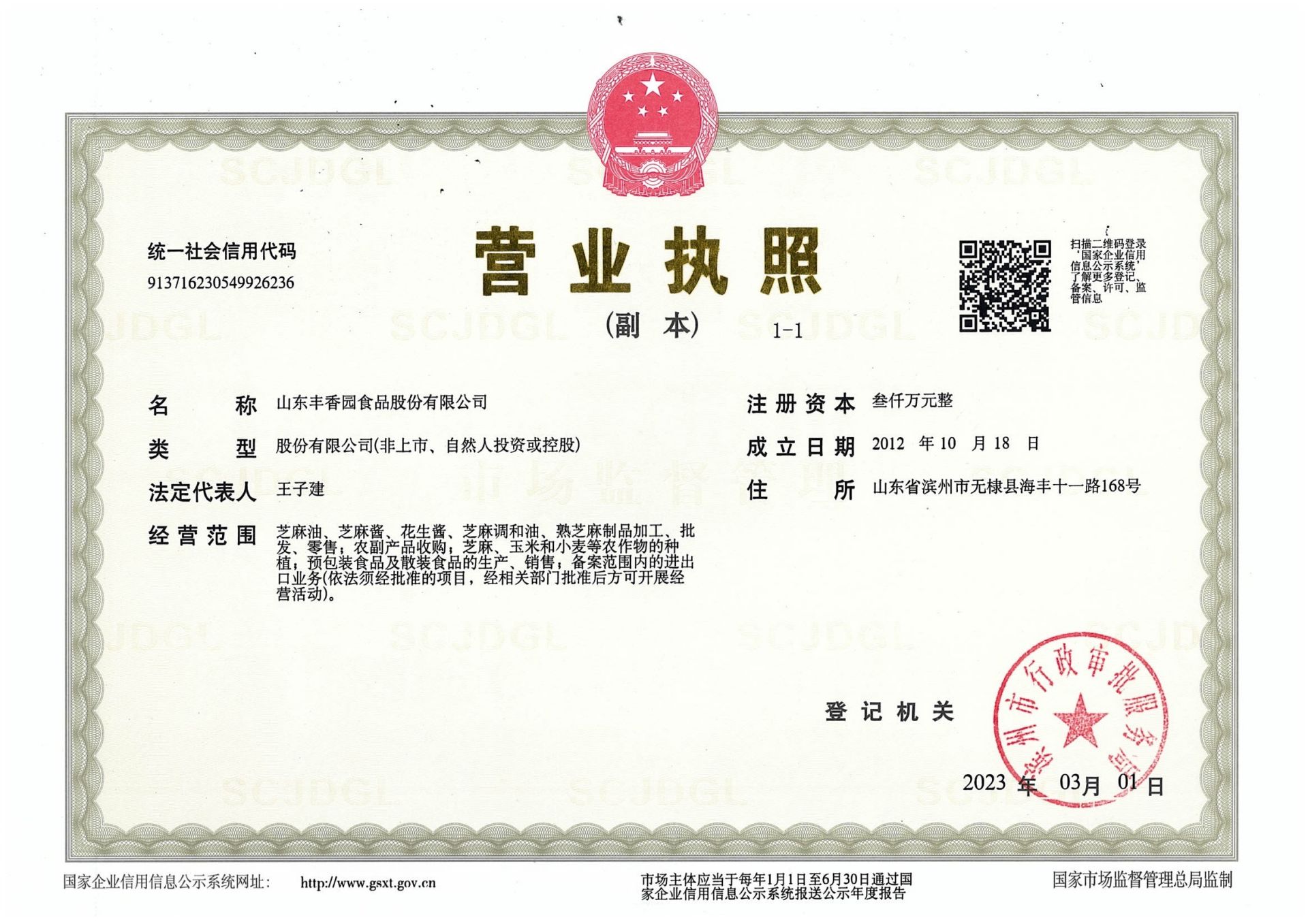 山東豐香園食品股份有限公司位于無棣縣西城工業(yè)園,成立于2012年,注冊(cè)資本3000萬元,員工60多人,年銷售收入8000多萬元,是“國家高新技術(shù)企業(yè)”、“中國好糧油”示范企業(yè)、“食安山東”示范生產(chǎn)加工企業(yè),公司集綠色、有機(jī)芝麻食品標(biāo)準(zhǔn)化、生產(chǎn)加工、研發(fā)、出口銷售為一體的山東省農(nóng)業(yè)產(chǎn)業(yè)化“重點(diǎn)龍頭企業(yè)”。 公司獲得HACCP國際質(zhì)量體系認(rèn)證、ISO9001:2015質(zhì)量管理體系認(rèn)證,產(chǎn)品獲得美國FDA認(rèn)證、美國、歐盟有機(jī)食品認(rèn)證、英國BRC體系認(rèn)證、A級(jí)綠色食品認(rèn)證、GB國標(biāo)有機(jī)食品認(rèn)證。 公司主要產(chǎn)品有芝麻油、芝麻醬、花生醬、芝麻粉和烘焙芝麻、兒童芝麻食品系列等六大種類上百個(gè)品種,產(chǎn)品出口美國、日本、韓國、新加坡、俄羅斯、澳大利亞、美國、等30多個(gè)國家。2018-2019年連續(xù)兩年芝麻食品出口量排名山東省第三位、濱州市第一位。 山東豐香園食品股份有限公司是國家級(jí)高新技術(shù)企業(yè),建有省級(jí)“一企一技術(shù)”研發(fā)中心、市級(jí)企業(yè)技術(shù)中心和市級(jí)工程實(shí)驗(yàn)室、市級(jí)工程技術(shù)中心等多個(gè)創(chuàng)新平臺(tái),擁有發(fā)明專利2項(xiàng),實(shí)用新型專利21項(xiàng),先后獲得省級(jí)“專精特新”中小企業(yè)、市級(jí)農(nóng)業(yè)產(chǎn)業(yè)化聯(lián)合體、科技型中小企業(yè)、濱州市級(jí)瞪羚企業(yè)、市級(jí)“一企一技術(shù)”創(chuàng)新企業(yè)和濱州市新興產(chǎn)業(yè)“白名單”企業(yè)等榮譽(yù)稱號(hào)。